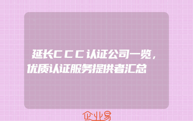 - 延长CCC认证公司一览,优质认证服务提供者汇总