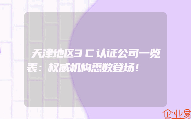 - 天津地区3C认证公司一览表:权威机构悉数登场!