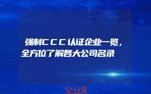 - 强制CCC认证企业一览:全方位了解各大公司名录一、CCC认证概述在中国,对于一些特定的产品,国家实行了强制性的CCC认证制度。CCC认证即中国强制性产品认证制度,旨在规范市场、保障消费者的权益。随着制
