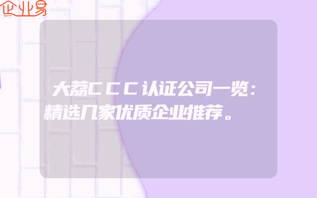 - 大荔CCC认证公司一览:精选几家优质企业推荐。