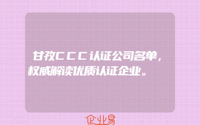 - 甘孜CCC认证公司名单,权威解读优质认证企业。