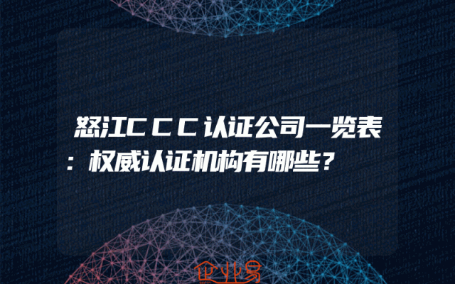- 怒江CCC认证公司一览表:权威认证机构有哪些?