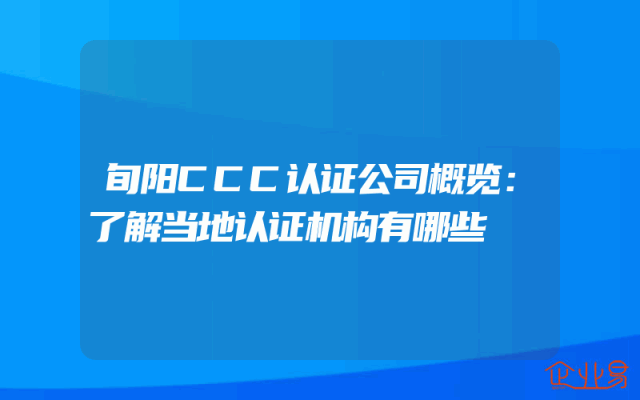 - 旬阳CCC认证公司概览:了解当地认证机构有哪些