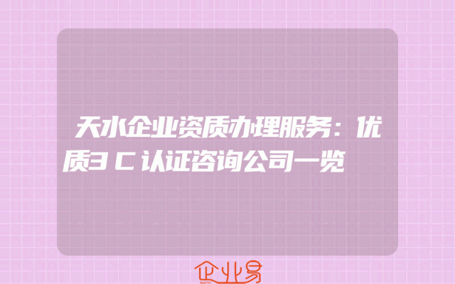- 天水企业资质办理服务:优质3C认证咨询公司一览