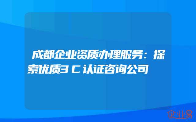- 成都企业资质办理服务:探索优质3C认证咨询公司