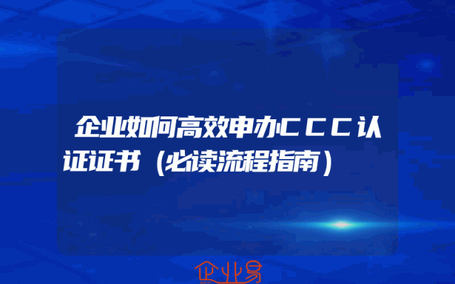- 企业如何高效申办CCC认证证书(必读流程指南)