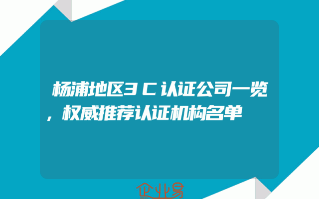 - 杨浦地区3C认证公司一览,权威推荐认证机构名单