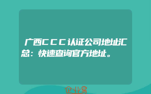 - 广西CCC认证公司地址汇总:快速查询官方地址。