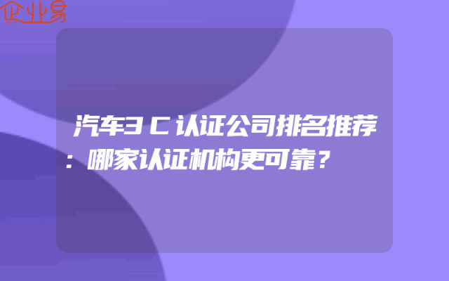 - 汽车3C认证公司排名推荐:哪家认证机构更可靠?