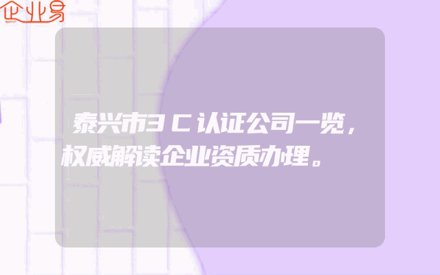 - 泰兴市3C认证公司一览,权威解读企业资质办理。