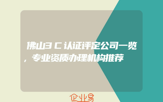 - 佛山3C认证评定公司一览及专业资质办理机构推荐一、佛山企业服务行业发展背景随着市场经济的发展,佛山的企业服务行业日益繁荣。在产品质量和安全方面,越来越多的企业开始重视资质认证,尤其是涉及消费者安全的产品,必须通过中国强制性产品认证(简称“C
