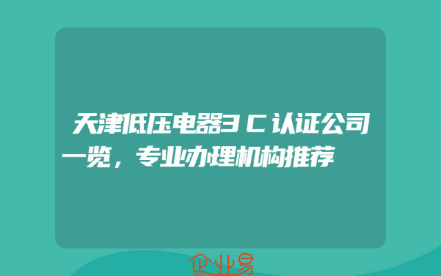 - 天津低压电器3C认证公司一览,专业办理机构推荐