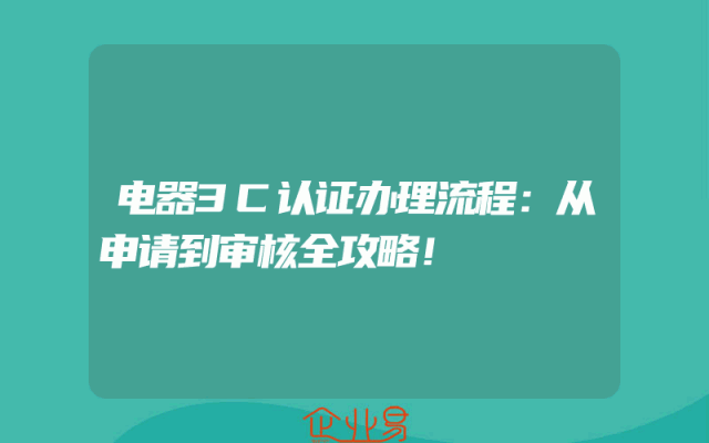- 电器3C认证办理流程:从申请到审核全攻略!