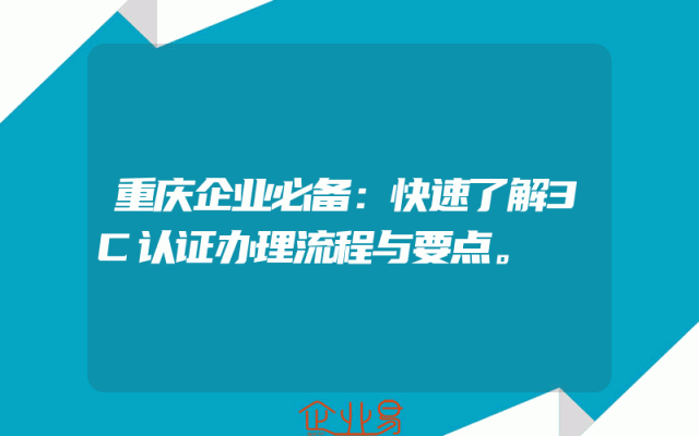 - 重庆企业必备:快速了解3C认证办理流程与要点。
