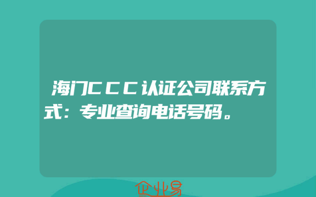 - 海门CCC认证公司联系方式:专业查询电话号码。