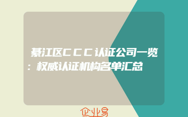 - 綦江区CCC认证公司一览:权威认证机构名单汇总