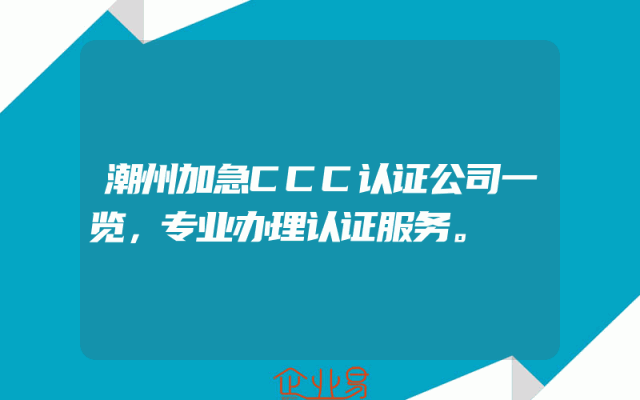 - 潮州加急CCC认证公司一览,专业办理认证服务。