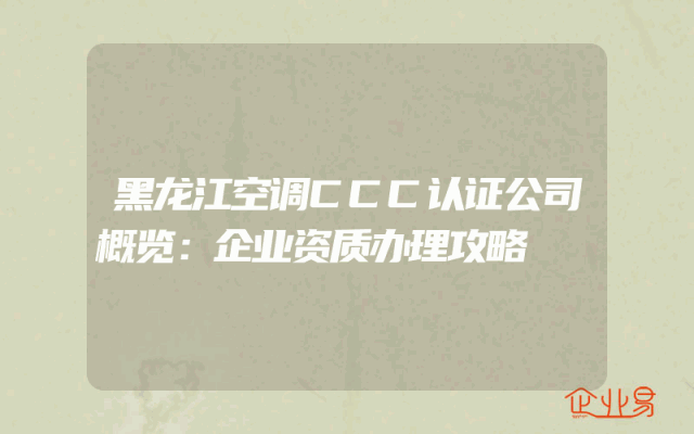 - 黑龙江空调CCC认证公司概览:企业资质办理攻略