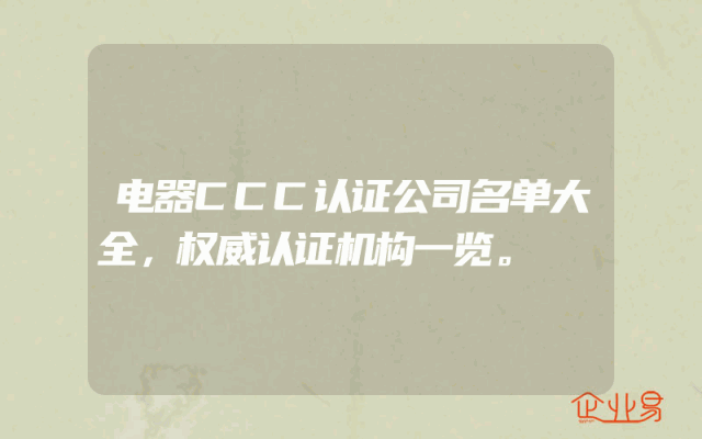 - 电器CCC认证公司名单大全,权威认证机构一览。