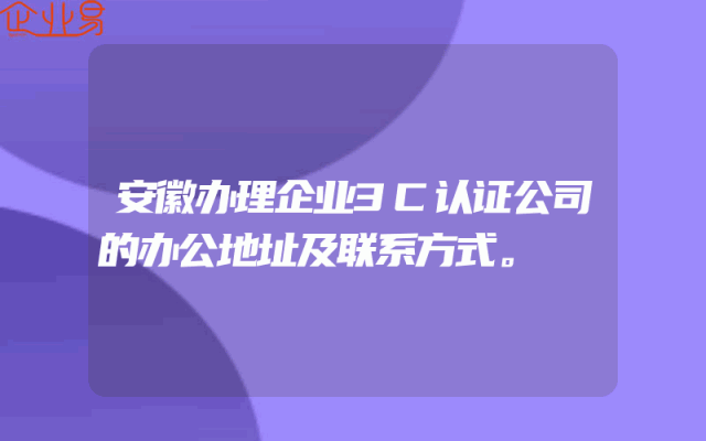 - 安徽办理企业3C认证公司的办公地址及联系方式。