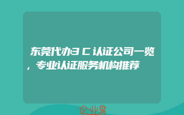 - 东莞代办3C认证公司一览,专业认证服务机构推荐