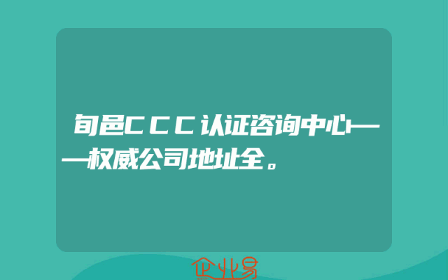 - 旬邑CCC认证咨询中心——权威公司地址全。