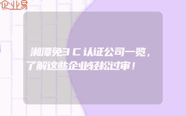 - 湘潭免3C认证公司一览,了解这些企业轻松过审!