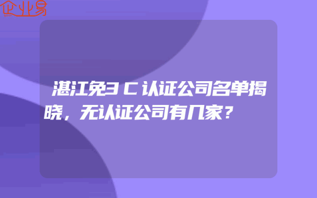 - 湛江免3C认证公司名单揭晓,无认证公司有几家?