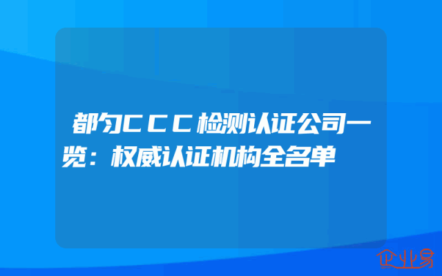 - 都匀CCC检测认证公司一览:权威认证机构全名单