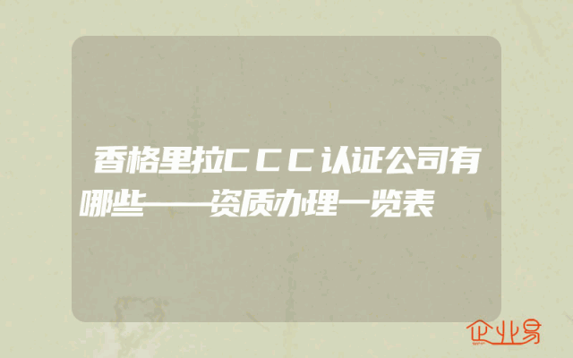 - 香格里拉CCC认证公司有哪些——资质办理一览表