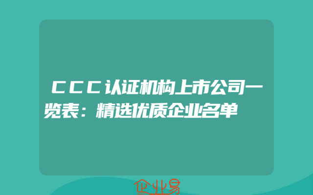 - CCC认证机构上市公司一览表:精选优质企业名单