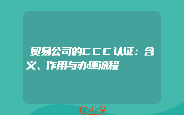 - 贸易公司的CCC认证:含义、作用与办理流程