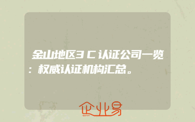 - 金山地区3C认证公司一览:权威认证机构汇总。
