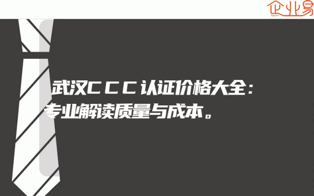 - 武汉CCC认证价格大全:专业解读质量与成本。