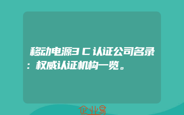 - 移动电源3C认证公司名录:权威认证机构一览。
