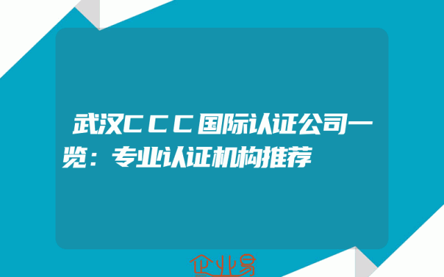 - 武汉CCC国际认证公司一览:专业认证机构推荐