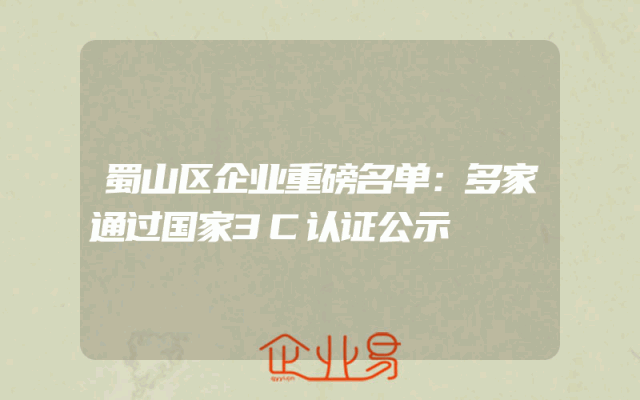 - 蜀山区企业重磅名单:多家通过国家3C认证公示
