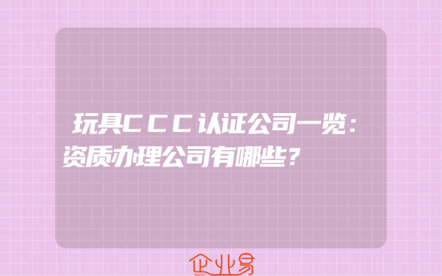- 玩具CCC认证公司一览:资质办理公司有哪些?