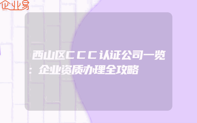 - 西山区CCC认证公司一览:企业资质办理全攻略