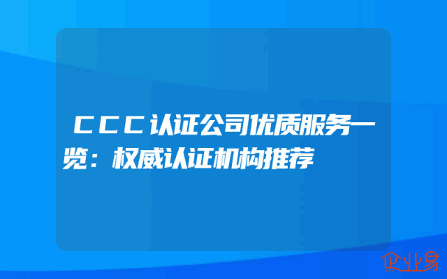 - CCC认证公司优质服务一览:权威认证机构推荐