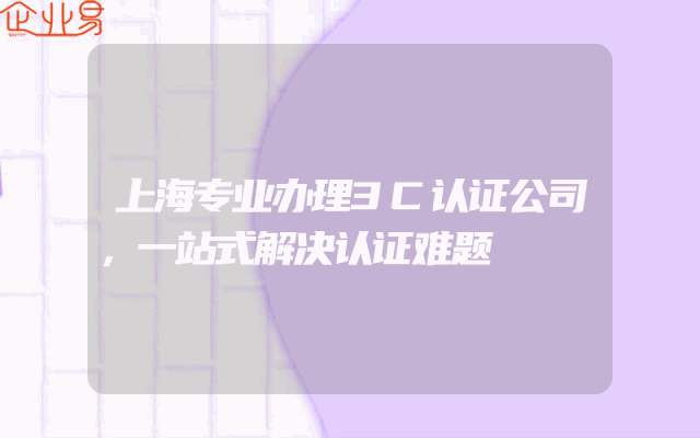- 上海专业办理3C认证公司,一站式解决认证难题
