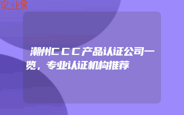 - 潮州CCC产品认证公司一览,专业认证机构推荐