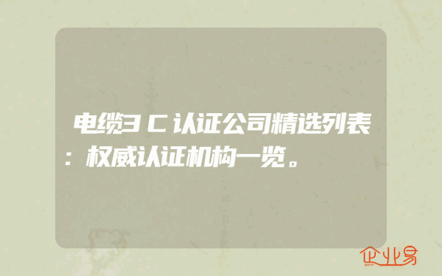 - 电缆3C认证公司精选列表:权威认证机构一览。