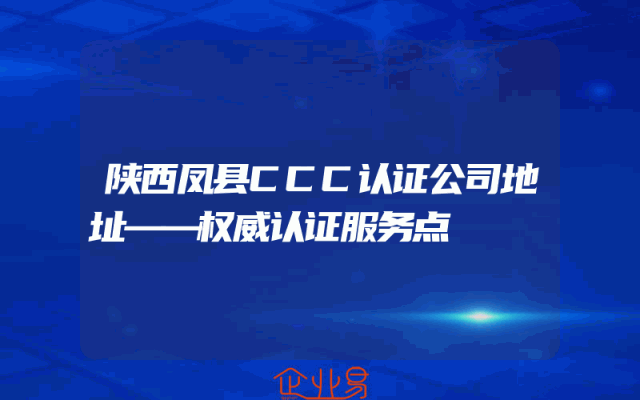 - 陕西凤县CCC认证公司地址——权威认证服务点