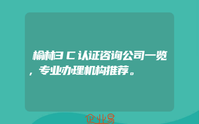 - 榆林3C认证咨询公司一览,专业办理机构推荐。