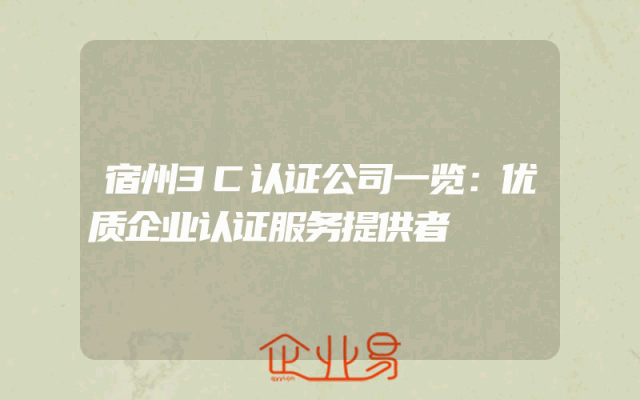 - 宿州3C认证公司一览:优质企业认证服务提供者