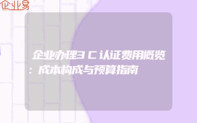 - 企业办理3C认证费用概览:成本构成与预算指南