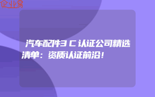 - 汽车配件3C认证公司精选清单:资质认证前沿!