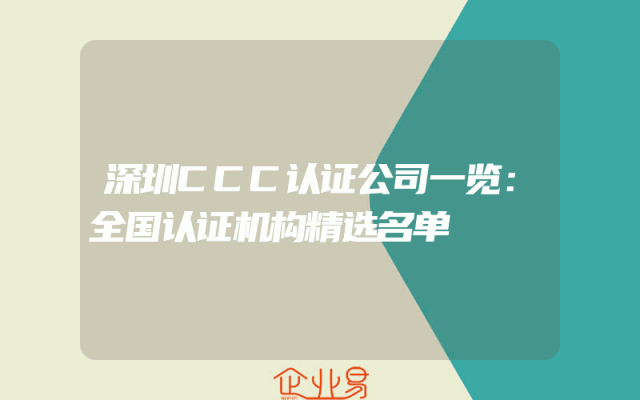 - 深圳CCC认证公司一览:全国认证机构精选名单