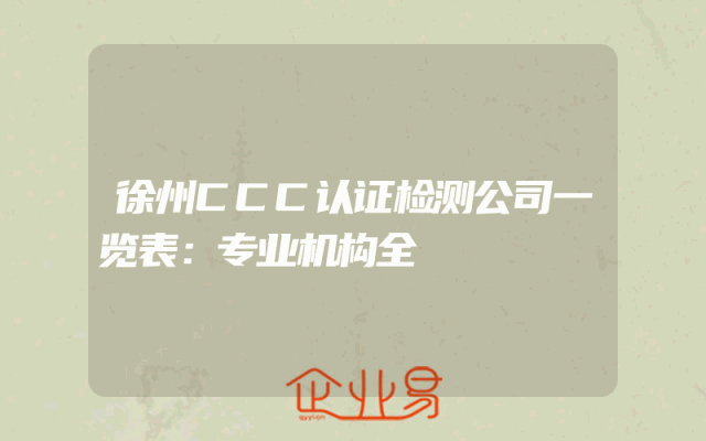 - 徐州CCC认证检测公司一览表:专业机构全
